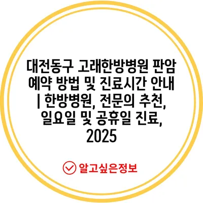 대전동구 고래한방병원 판암 예약 방법 및 진료시간 안내 | 한방병원, 전문의 추천, 일요일 및 공휴일 진료, 2025