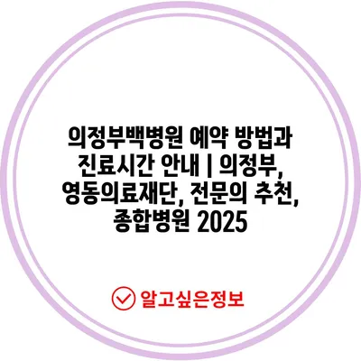 의정부백병원 예약 방법과 진료시간 안내 | 의정부, 영동의료재단, 전문의 추천, 종합병원 2025