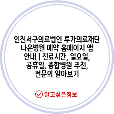 인천서구의료법인 루가의료재단 나은병원 예약 홈페이지 앱 안내 | 진료시간, 일요일, 공휴일, 종합병원 추천, 전문의 알아보기