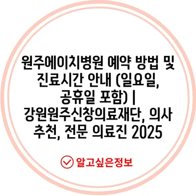 원주에이치병원 예약 방법 및 진료시간 안내 (일요일, 공휴일 포함) | 강원원주신창의료재단, 의사 추천, 전문 의료진 2025
