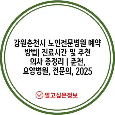 강원춘천시 노인전문병원 예약 방법| 진료시간 및 추천 의사 총정리 | 춘천, 요양병원, 전문의, 2025