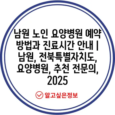 남원 노인 요양병원 예약 방법과 진료시간 안내 | 남원, 전북특별자치도, 요양병원, 추천 전문의, 2025