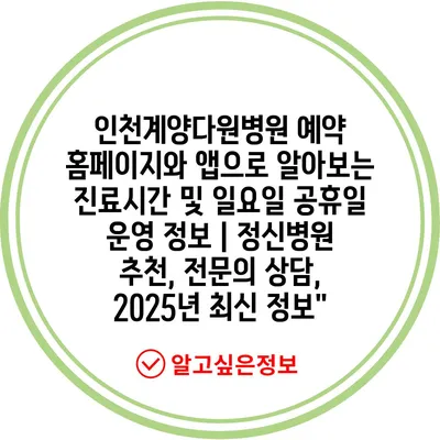 인천계양다원병원 예약 홈페이지와 앱으로 알아보는 진료시간 및 일요일 공휴일 운영 정보 | 정신병원 추천, 전문의 상담, 2025년 최신 정보”