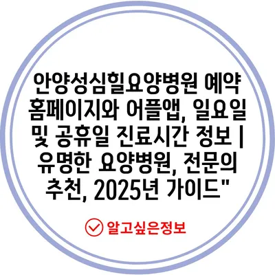 안양성심힐요양병원 예약 홈페이지와 어플앱, 일요일 및 공휴일 진료시간 정보 | 유명한 요양병원, 전문의 추천, 2025년 가이드”