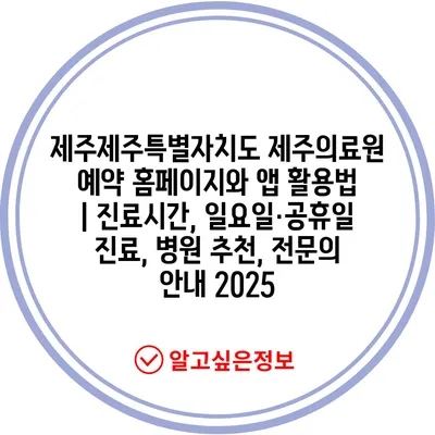 제주제주특별자치도 제주의료원 예약 홈페이지와 앱 활용법 | 진료시간, 일요일·공휴일 진료, 병원 추천, 전문의 안내 2025