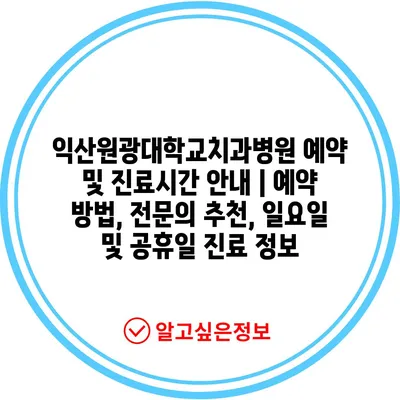 익산원광대학교치과병원 예약 및 진료시간 안내 | 예약 방법, 전문의 추천, 일요일 및 공휴일 진료 정보