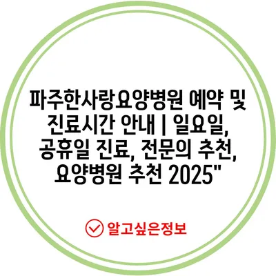 파주한사랑요양병원 예약 및 진료시간 안내 | 일요일, 공휴일 진료, 전문의 추천, 요양병원 추천 2025″