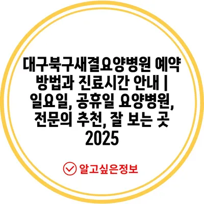 대구북구새결요양병원 예약 방법과 진료시간 안내 | 일요일, 공휴일 요양병원, 전문의 추천, 잘 보는 곳 2025