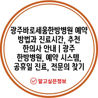 광주바로세움한방병원 예약 방법과 진료시간, 추천 한의사 안내 | 광주 한방병원, 예약 시스템, 공휴일 진료, 전문의 찾기