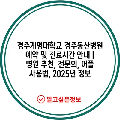 경주계명대학교 경주동산병원 예약 및 진료시간 안내 | 병원 추천, 전문의, 어플 사용법, 2025년 정보