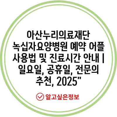 아산누리의료재단 녹십자요양병원 예약 어플 사용법 및 진료시간 안내 | 일요일, 공휴일, 전문의 추천, 2025″