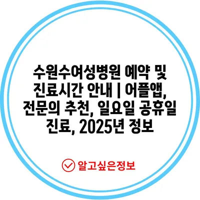 수원수여성병원 예약 및 진료시간 안내 | 어플앱, 전문의 추천, 일요일 공휴일 진료, 2025년 정보