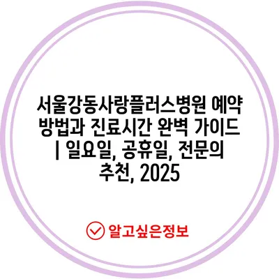 서울강동사랑플러스병원 예약 방법과 진료시간 완벽 가이드 | 일요일, 공휴일, 전문의 추천, 2025