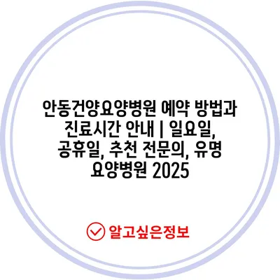 안동건양요양병원 예약 방법과 진료시간 안내 | 일요일, 공휴일, 추천 전문의, 유명 요양병원 2025