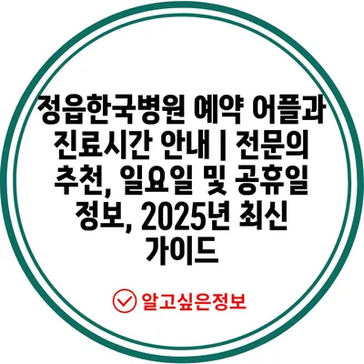 정읍한국병원 예약 어플과 진료시간 안내 | 전문의 추천, 일요일 및 공휴일 정보, 2025년 최신 가이드