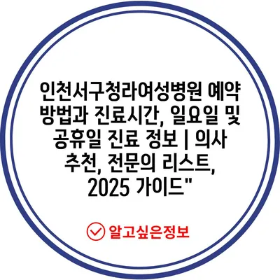 인천서구청라여성병원 예약 방법과 진료시간, 일요일 및 공휴일 진료 정보 | 의사 추천, 전문의 리스트, 2025 가이드”