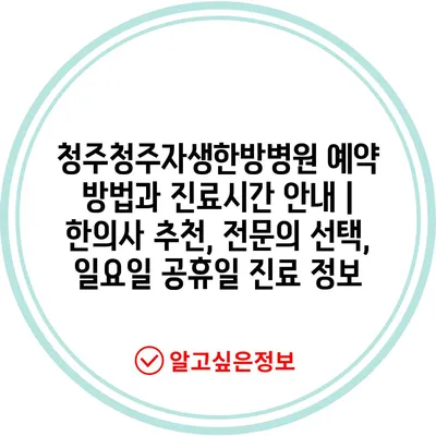 청주청주자생한방병원 예약 방법과 진료시간 안내 | 한의사 추천, 전문의 선택, 일요일 공휴일 진료 정보