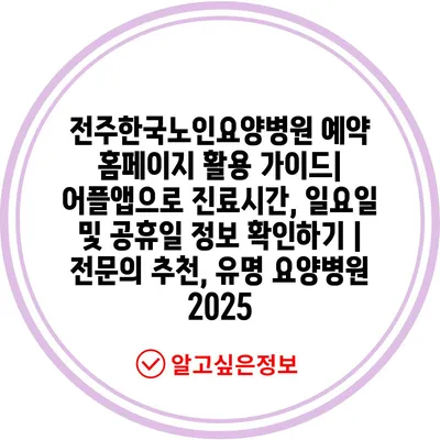 서울은평서울재활병원 예약 홈페이지와 앱 이용법 | 진료시간, 일요일 및 공휴일 운영, 전문의 추천 2025