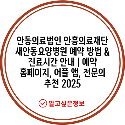 안동의료법인 안흥의료재단 새안동요양병원 예약 방법 & 진료시간 안내 | 예약 홈페이지, 어플 앱, 전문의 추천 2025