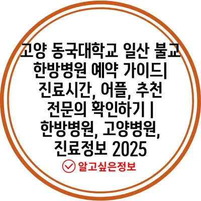 고양 동국대학교 일산 불교 한방병원 예약 가이드| 진료시간, 어플, 추천 전문의 확인하기 | 한방병원, 고양병원, 진료정보 2025