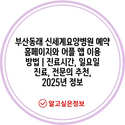 부산동래 신세계요양병원 예약 홈페이지와 어플 앱 이용 방법 | 진료시간, 일요일 진료, 전문의 추천, 2025년 정보