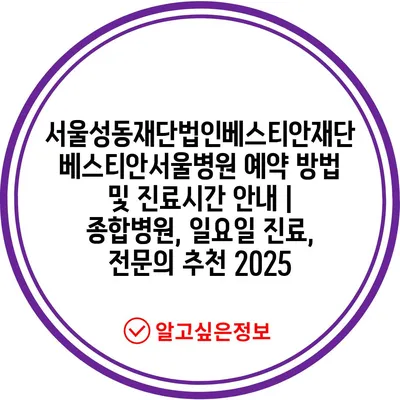 서울성동재단법인베스티안재단 베스티안서울병원 예약 방법 및 진료시간 안내 | 종합병원, 일요일 진료, 전문의 추천 2025