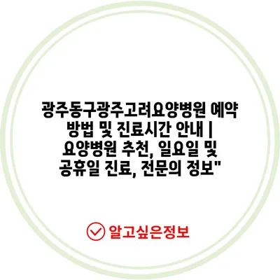 광주동구광주고려요양병원 예약 방법 및 진료시간 안내 | 요양병원 추천, 일요일 및 공휴일 진료, 전문의 정보”
