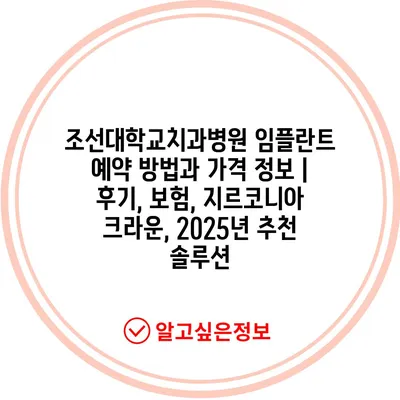 조선대학교치과병원 임플란트 예약 방법과 가격 정보 | 후기, 보험, 지르코니아 크라운, 2025년 추천 솔루션