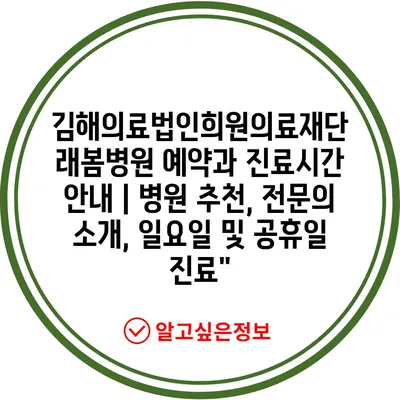 김해의료법인희원의료재단 래봄병원 예약과 진료시간 안내 | 병원 추천, 전문의 소개, 일요일 및 공휴일 진료”