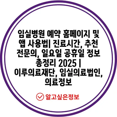 임실병원 예약 홈페이지 및 앱 사용법| 진료시간, 추천 전문의, 일요일 공휴일 정보 총정리 2025 | 이루의료재단, 임실의료법인, 의료정보