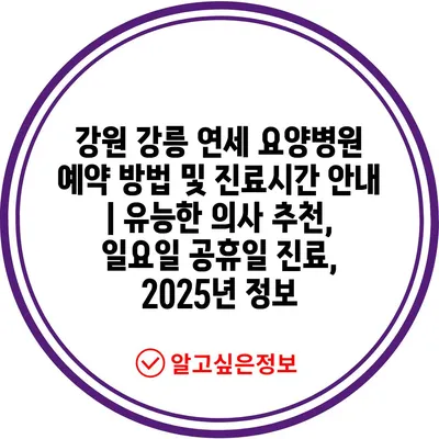 강원 강릉 연세 요양병원 예약 방법 및 진료시간 안내 | 유능한 의사 추천, 일요일 공휴일 진료, 2025년 정보