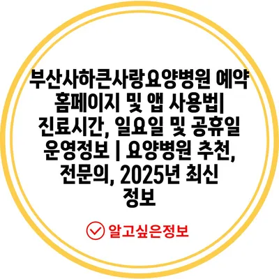 부산사하큰사랑요양병원 예약 홈페이지 및 앱 사용법| 진료시간, 일요일 및 공휴일 운영정보 | 요양병원 추천, 전문의, 2025년 최신 정보