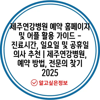 제주연강병원 예약 홈페이지 및 어플 활용 가이드 – 진료시간, 일요일 및 공휴일 의사 추천 | 제주연강병원, 예약 방법, 전문의 찾기 2025