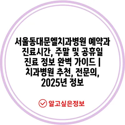 서울동대문엘치과병원 예약과 진료시간, 주말 및 공휴일 진료 정보 완벽 가이드 | 치과병원 추천, 전문의, 2025년 정보