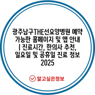 광주남구THE선요양병원 예약 가능한 홈페이지 및 앱 안내 | 진료시간, 한의사 추천, 일요일 및 공휴일 진료 정보 2025