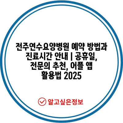 전주연수요양병원 예약 방법과 진료시간 안내 | 공휴일, 전문의 추천, 어플 앱 활용법 2025