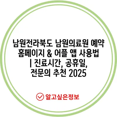 남원전라북도 남원의료원 예약 홈페이지 & 어플 앱 사용법 | 진료시간, 공휴일, 전문의 추천 2025