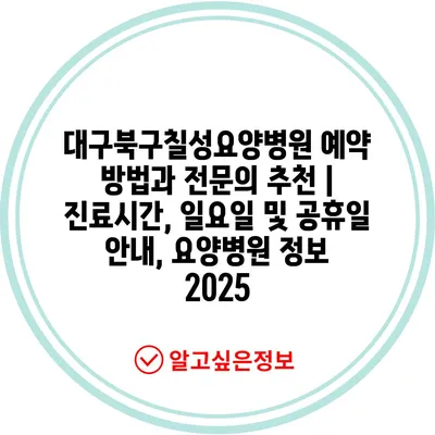 대구북구칠성요양병원 예약 방법과 전문의 추천 | 진료시간, 일요일 및 공휴일 안내, 요양병원 정보 2025