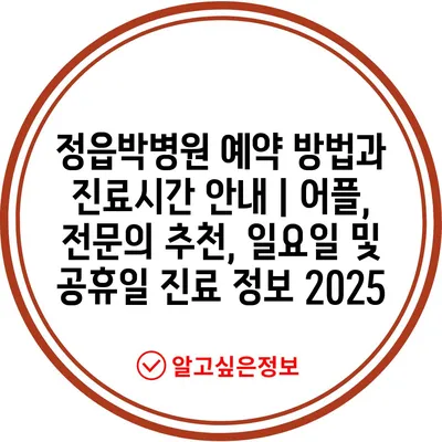 정읍박병원 예약 방법과 진료시간 안내 | 어플, 전문의 추천, 일요일 및 공휴일 진료 정보 2025