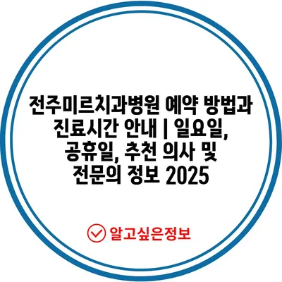 전주미르치과병원 예약 방법과 진료시간 안내 | 일요일, 공휴일, 추천 의사 및 전문의 정보 2025
