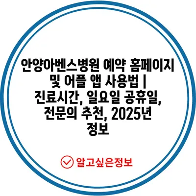 안양아벤스병원 예약 홈페이지 및 어플 앱 사용법 | 진료시간, 일요일 공휴일, 전문의 추천, 2025년 정보