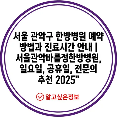 서울 관악구 한방병원 예약 방법과 진료시간 안내 | 서울관악바를정한방병원, 일요일, 공휴일, 전문의 추천 2025″