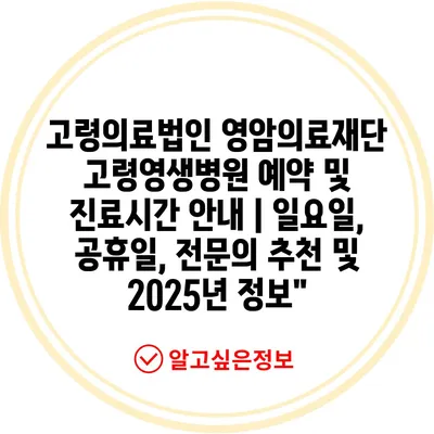 서울 구로구로성심병원 예약 방법과 진료시간 안내 | 종합병원 추천, 전문의 찾기, 일요일 및 공휴일 진료”
