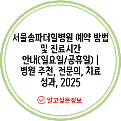 서울송파더힐병원 예약 방법 및 진료시간 안내(일요일/공휴일) | 병원 추천, 전문의, 치료 성과, 2025
