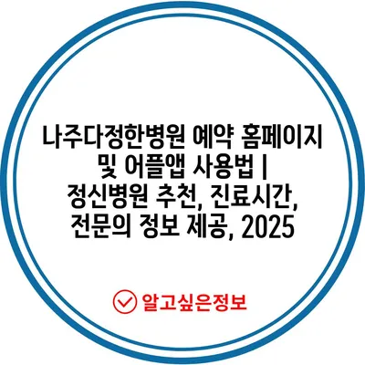 나주다정한병원 예약 홈페이지 및 어플앱 사용법 | 정신병원 추천, 진료시간, 전문의 정보 제공, 2025