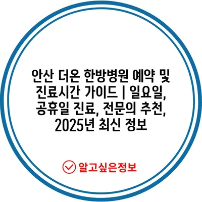 안산 더온 한방병원 예약 및 진료시간 가이드 | 일요일, 공휴일 진료, 전문의 추천, 2025년 최신 정보