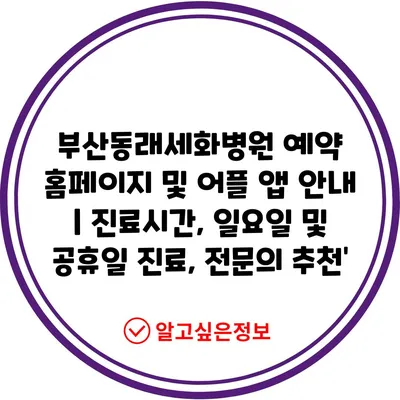 부산동래세화병원 예약 홈페이지 및 어플 앱 안내 | 진료시간, 일요일 및 공휴일 진료, 전문의 추천’