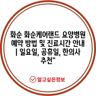 화순 화순케어랜드 요양병원 예약 방법 및 진료시간 안내 | 일요일, 공휴일, 한의사 추천”