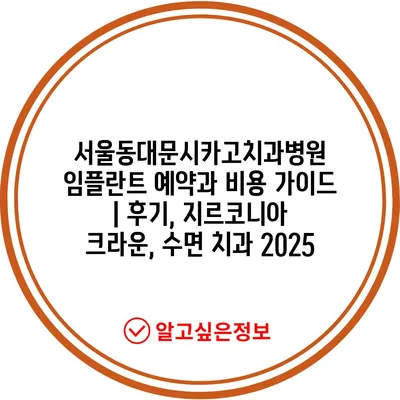 서울동대문시카고치과병원 임플란트 예약과 비용 가이드 | 후기, 지르코니아 크라운, 수면 치과 2025