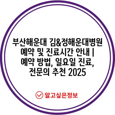 부산진구부산큰병원 예약 방법 및 진료시간 안내 | 병원 추천, 전문의, 주말 진료, 2025 정보